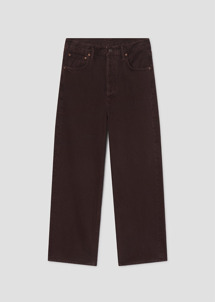 AGOLDE’s Ren Jean offers an elevated take on the classic wide-leg silhouette. Made from 100% rigid, non-stretch regenerative cotton, these high-rise jeans feature a deep grape tone with brown undertones and subtle marbling. The cropped wide legs create a relaxed yet flattering fit, while the heavyweight denim ensures all-day comfort. Pair with neutral tones or a crisp white top for a polished look.