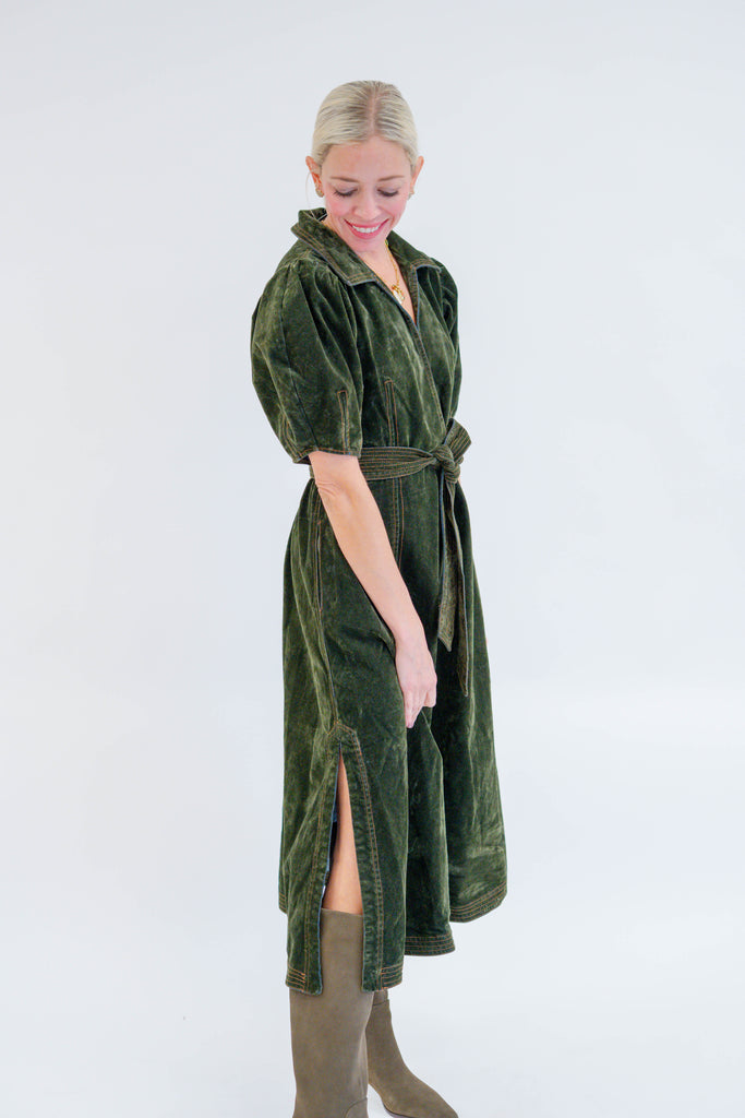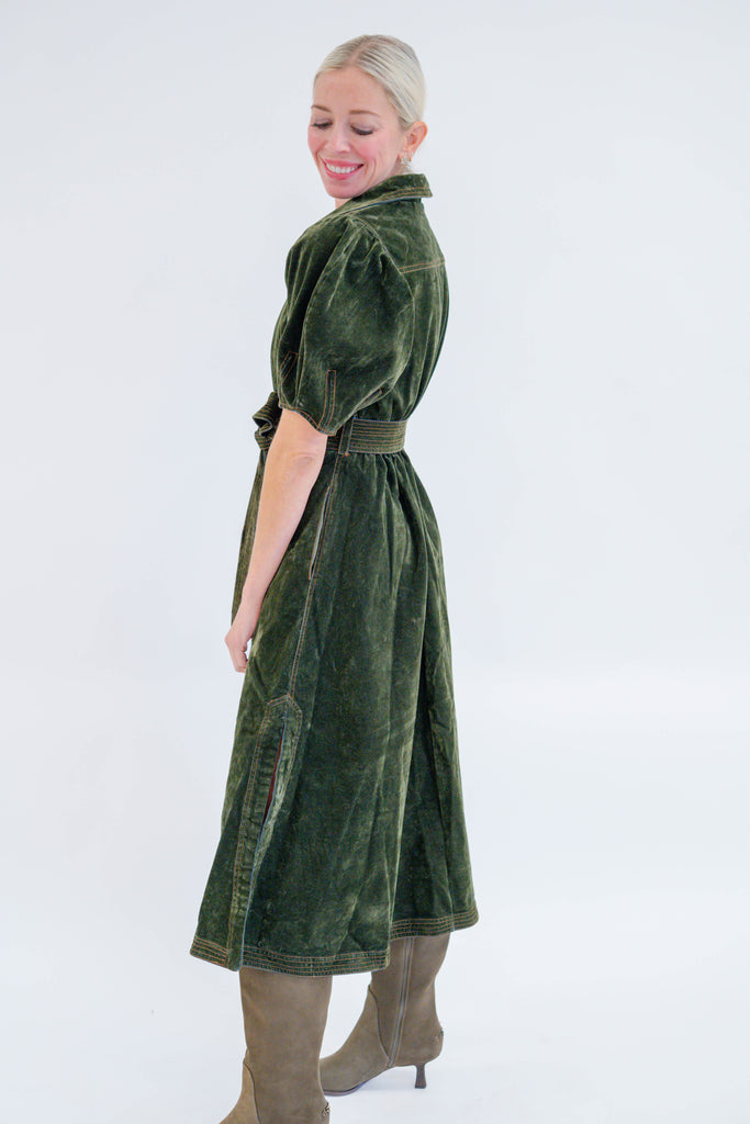 Elevate your look with the En Saison Julien Midi Dress, featuring soft velvet fabric and charming puff sleeves for a touch of whimsy. The flattering midi length pairs perfectly with the adjustable belt, allowing you to accentuate your waist and twirl with confidence.