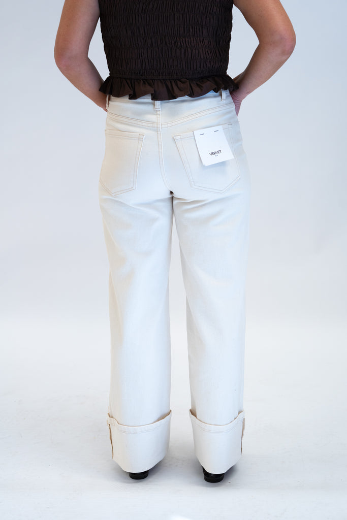 Super High Rise Cuffed Wide Leg Jeans in Ecru