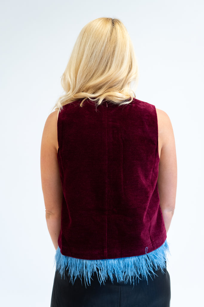 THML Sleeveless Suede Feather Hem Top in Burgundy