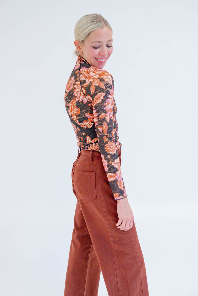 Floral Black Lace Top $48.00 size S S M L S M L Add to Cart This item is a recurring or deferred purchase. By continuing, I agree to the cancellation policy and authorize you to charge my payment method at the prices, frequency and dates listed on this page until my order is fulfilled or I cancel, if permitted. Please fill in the form below if you'd like to be notified when it becomes available. Your Email Send This site is protected by hCaptcha and the hCaptcha Privacy Policy and Terms of Service apply. A printed stretch lace top with high neckline and long sleeve details.