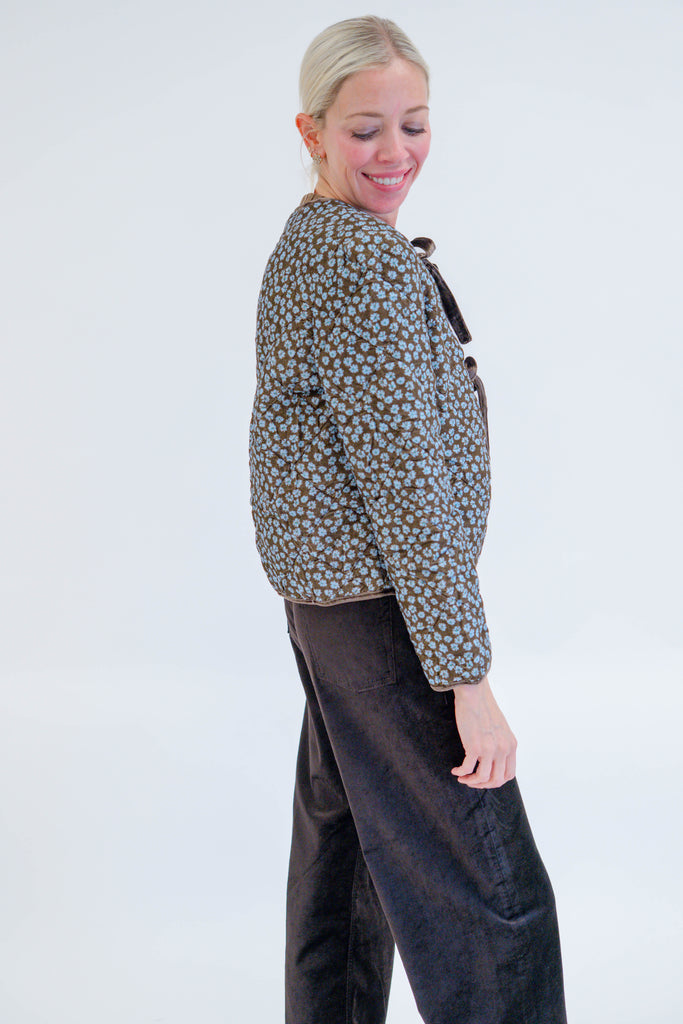 Quilted Ribbon Jacket in Mocha Floral