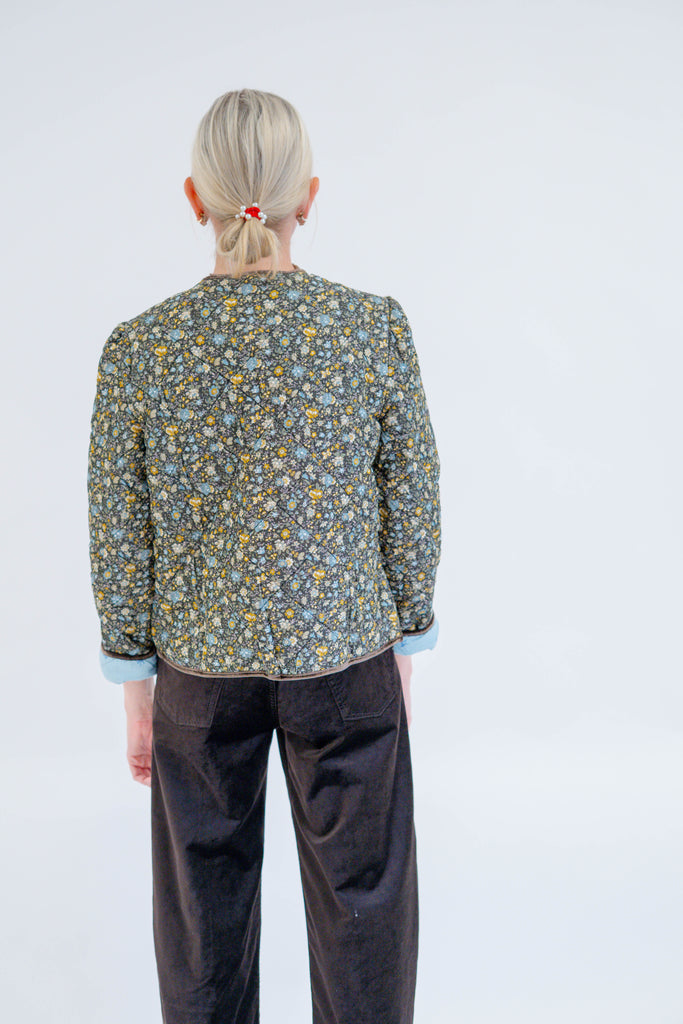 Wrap yourself in charm with this quilted jacket featuring a playful olive green mocha floral print. Inside, a cozy mocha gingham liner adds a sweet surprise, blending comfort with whimsical style. Perfect for crisp days when you want to layer up with a pop of fun and flair.