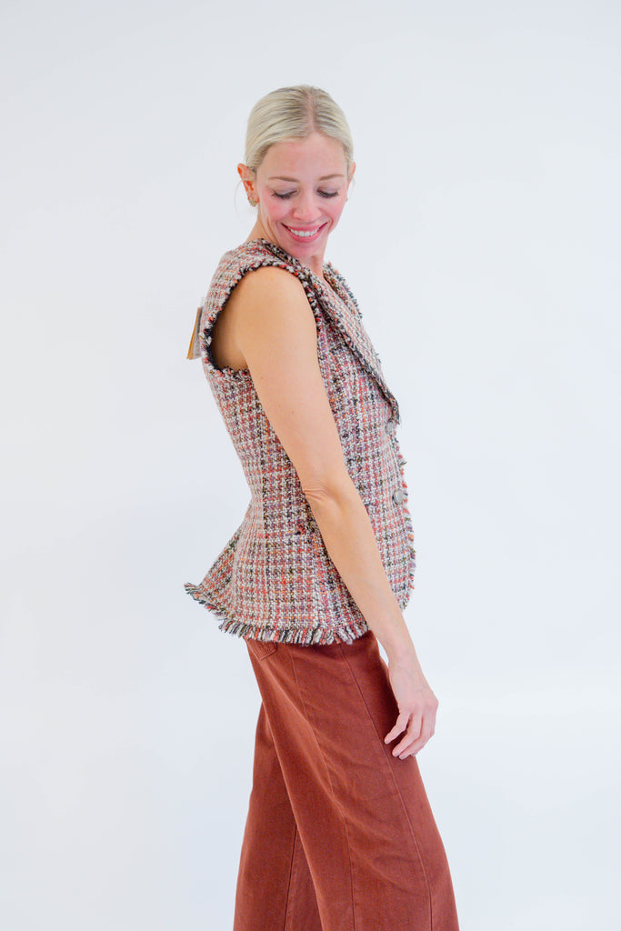 Suncoo Button Front Tweed Vest in Red Multi $198.00 size XS/T0 XS/T0 S/T1 M/T2 L/T3 XS/T0 S/T1 M/T2 L/T3 Add to Cart This item is a recurring or deferred purchase. By continuing, I agree to the cancellation policy and authorize you to charge my payment method at the prices, frequency and dates listed on this page until my order is fulfilled or I cancel, if permitted. Please fill in the form below if you'd like to be notified when it becomes available. Your Email Send This site is protected by hCaptcha and the hCaptcha Privacy Policy and Terms of Service apply. Fit is TTS.